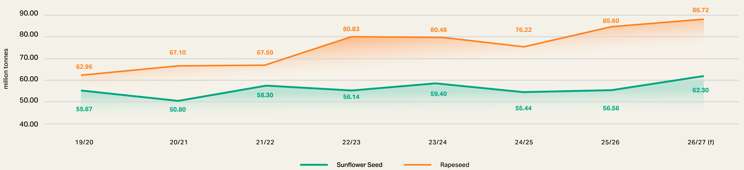 Figure 3: Global sunflower seed and rapeseed production (Oil World, 2026).